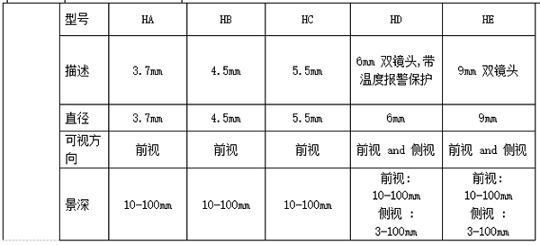 此外,該款產(chǎn)品有直徑3.7mm、4.5mm、5.5mm三種直視鏡頭,直徑6mm、9mm兩種雙鏡頭,讓您可以按需選擇,一機多管,以最優(yōu)的價格獲得最佳的搭配組合,以適應(yīng)多種工況環(huán)境。