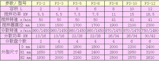 FS多功能攪拌分散釜主要技術(shù)參數(shù)